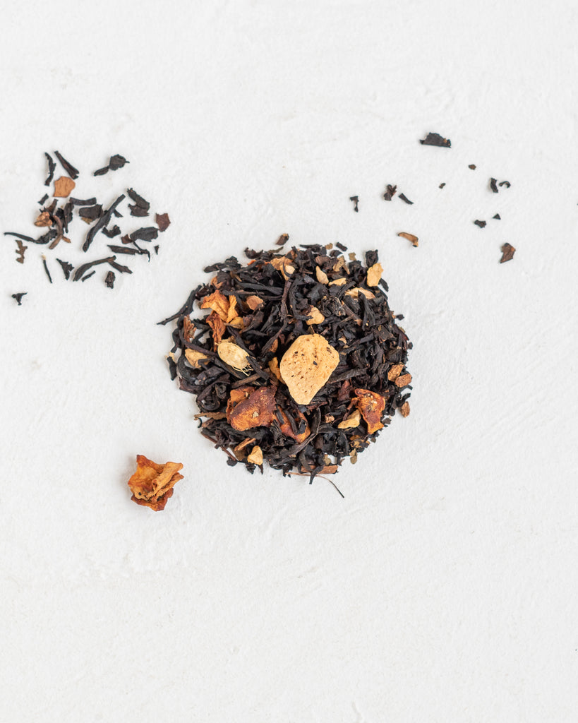 El sabor del otoño en una taza. Un té negro intenso con notas dulces y especiadas que recuerdan al clásico Pumpkin Spice Latte. Calabaza, especias y ese toque cremoso que lo hace irresistible. Ideal para tardes frías, mantas suaves y momentos de calma.